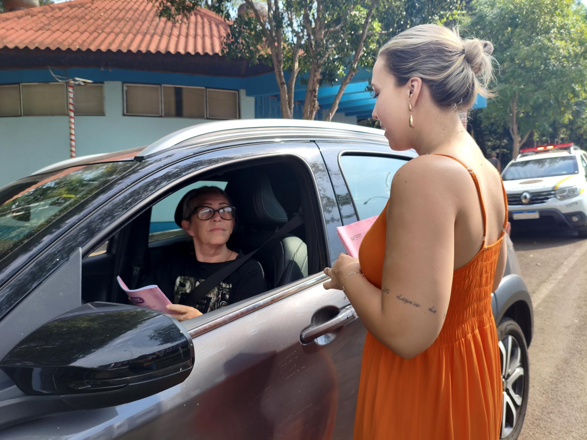 Durante a atividade, foram distribuídos livros informativos com orientações sobre a Lei Maria da Penha, destacando os direitos das mulheres, os canais de denúncia e os mecanismos de proteção existentes. A ação teve como objetivo levar informação à população e reforçar que denunciar situações de violência é um passo essencial para garantir proteção e justiça às vítimas.