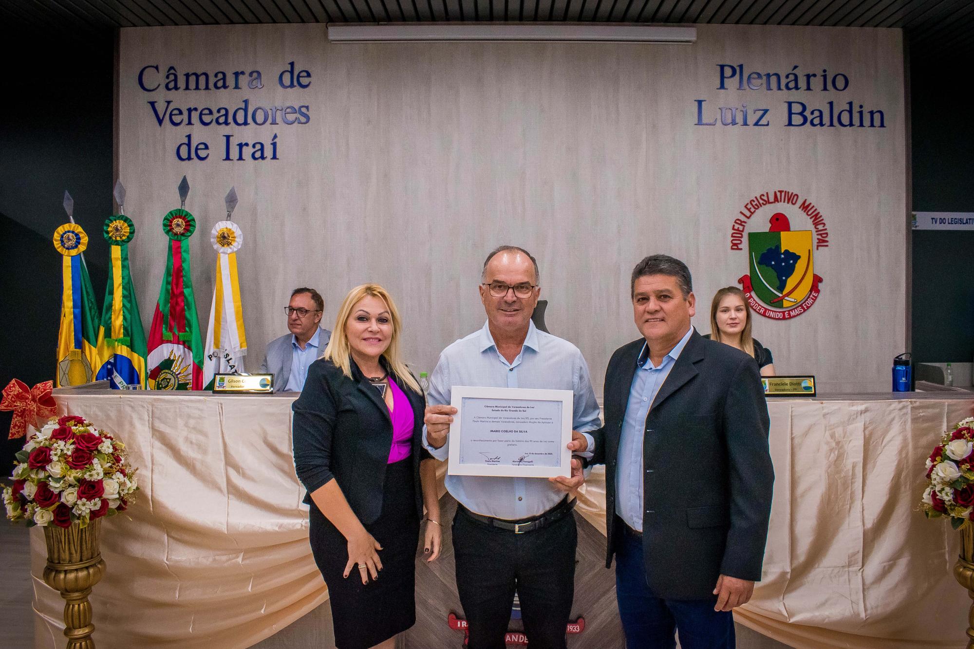 A homenagem, concedida pela vereadora Maristela Panegalli, teve por objetivo reconhecer a contribuição dos ex-prefeitos ao município de Iraí. Receberam a Moção de Aplauso Clovis José Magnabosco exerceu o cargo de prefeito de 1993 a 1996; Mario Coelho da Silva exerceu o cargo de prefeito de 2009 a 2012; Urivalde Pigatto exerceu o cargo de prefeito por quatro mandatos sendo eles 1964 a 1968, 1969 a 1971, 1983 a 1988, 2001 a 2004; Vilmar Luiz Leitte exerceu o cargo de prefeito de 1997 a 2000 e Volmir José Bielski exerceu o cargo de prefeito de 2013 a 2016.