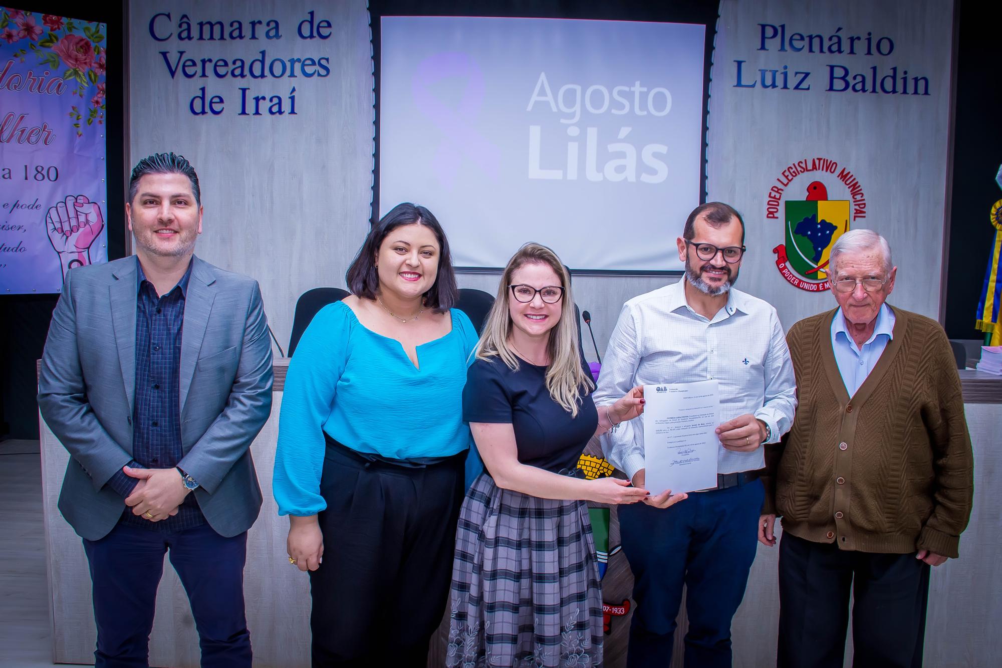 Com o objetivo de mobilizar a população sobre a importância do enfrentamento à violência contra a mulher, o Poder Legislativo de Iraí, através da sua Procuradoria da Mulher, promoveu na última quarta-feira, 24, uma ação alusiva ao Agosto Lilás.