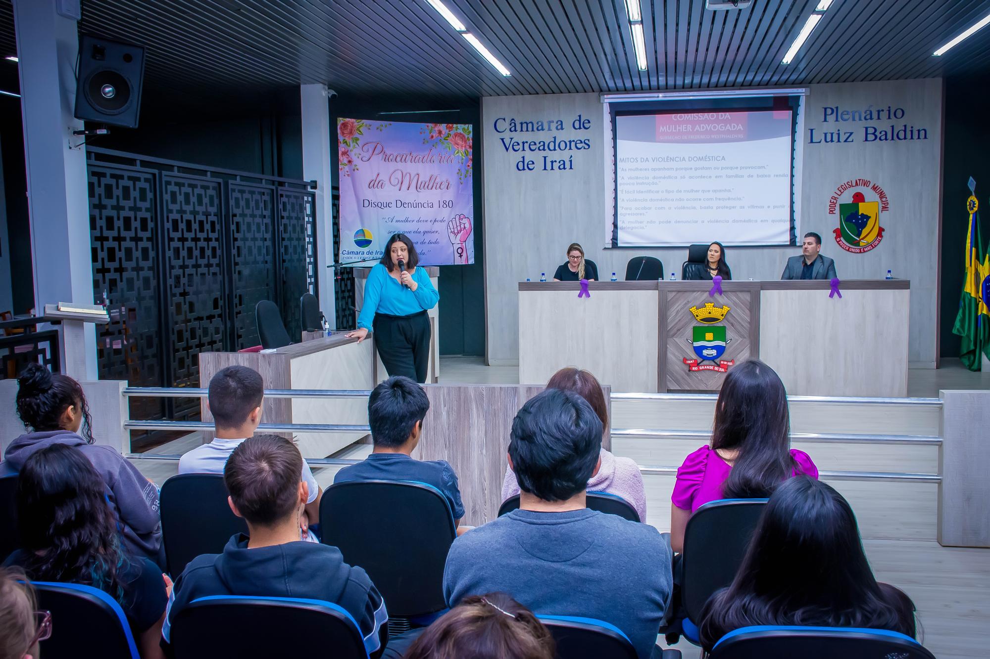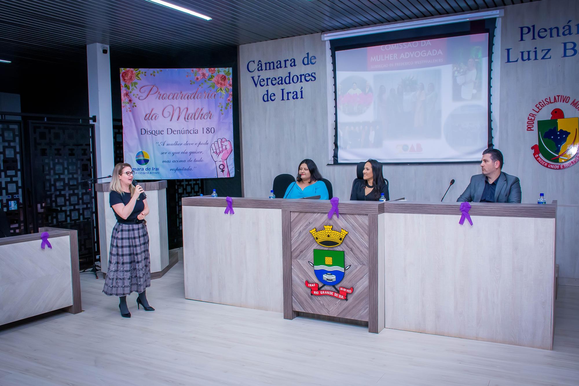 O evento ocorreu no Plenário da Câmara, e foi aberto pela Procuradora da Mulher da Câmara, a vereadora Ana Paula Rodrigues, e pelo assessor jurídico da Casa, Jarbas Souza. Após a presidente da Ordem dos Advogados da Subsecção de Frederico Westphalen, Drª. Patricia Luzia Stieven, e a Drª. Kelly Fernandes de Almeida de Carvalho, Secretária-Geral da OAB Subseção Frederico Westphalen e Presidente da Comissão da Mulher Advogada conduziram a palestra. Também esteve presente um grande público formado por advogados, psicóloga, professores, representantes da delegacia, administração municipal, membros da liga do câncer e estudantes.